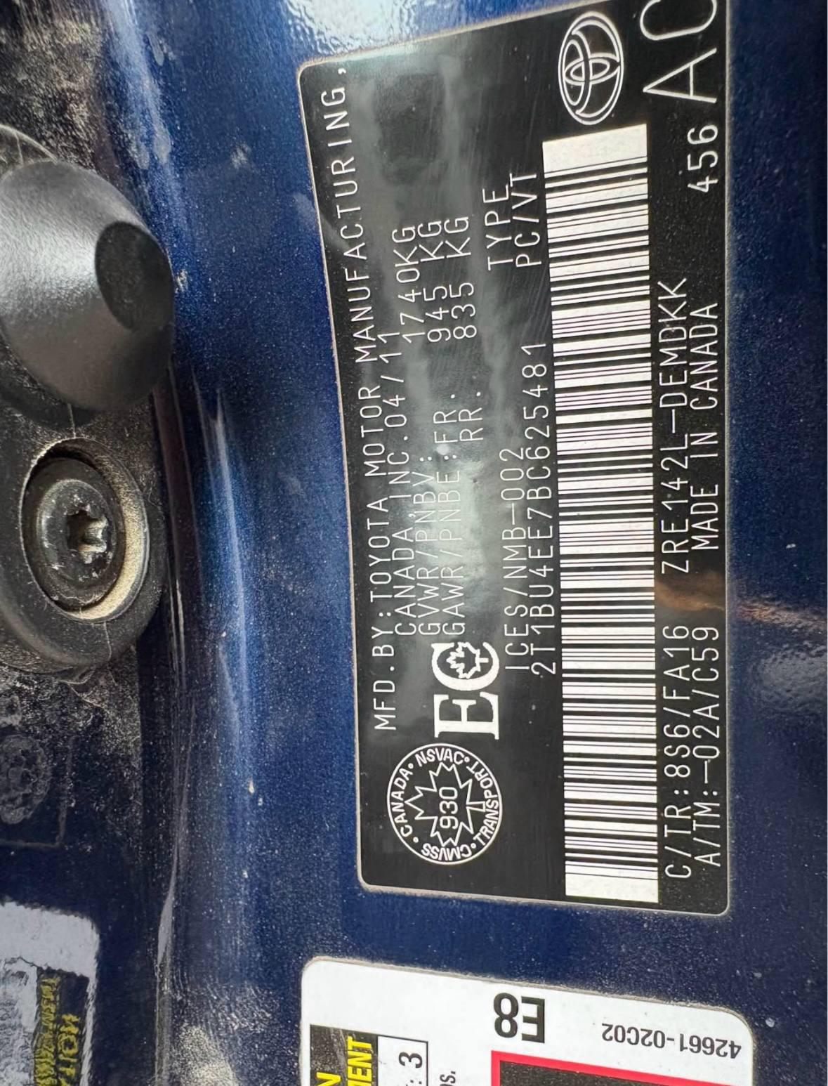 2T1BU4EE7BC625481